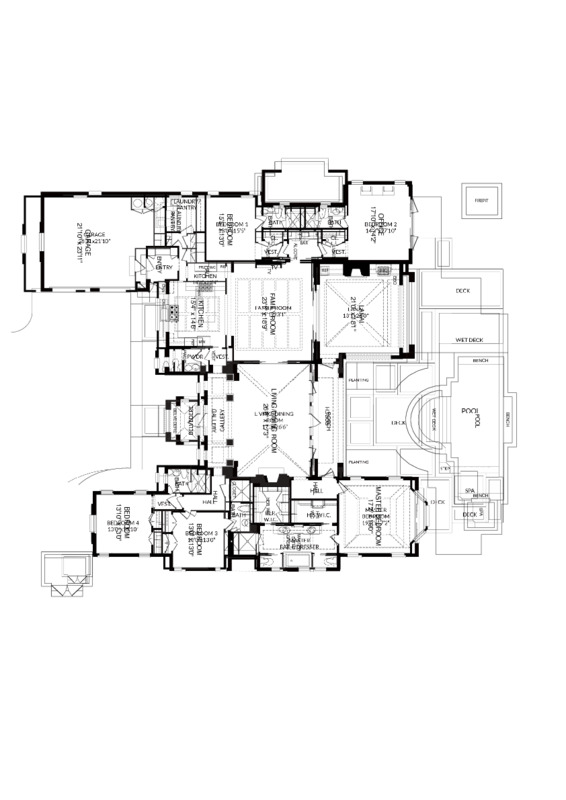 The interior is all wow-factor, featuring a family room with enticing arched ceiling and nearby alcove bar with icemaker and refrigerator drawers. Opening out to the lanai, the room adjoins both the main living space and a stunning chef’s kitchen—an entertainer’s dream—featuring custom, under-cabinet LED lighting, a generous center island, and top-of-the-line Sub-Zero and Wolf appliances - including stand-alone freezer, refrigerator, and beverage cooler. The result is a space that is both highly functional and visually captivating.